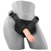 Slip the King Cock (or desired dildo) though the opening in the soft nylon harness and slide an O-ring over-top before securing hardy velcro straps. The included O-rings offer Small (1.2'), Medium (1.6') and Large (2')sizes, easily fitting many toys. The harness itself features a comfortably waistband along with a g-string back-strap, it comfortably fits up to a 52 inch (132cm) waist.