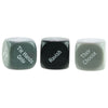 In the package, you'll find 3 die, one grey, one black and one ash. To play, take turns rolling all 3 together. When the dust settles, you'll have yourselves a pre-determined dom or sub (ash die), a method of restraint (grey), and a sexy action (black die). For best results, have some of your favorite bondage gear, accessories and props at the ready before you begin.