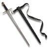 This Knights Templar Sword is made of high carbon steel making it light weight. The sword features wood scabbard wrapped in leather with belt. The handle is wood, wrapped in leather. The cross guard and pommel are solid steel, polished and fitted onto a full tang that is peened at top of the pommel for strength and durability.