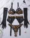 Leopard Eyelash Garter Lingerie Sets with Gloves