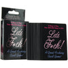 Packing three separate sexy games into one, the Let's F*ck deck includes 48 X-rated Let's...cards, 4 equally scandalous Wild cards and instructions/rules for three possible ways to play.