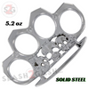 Triple skull Knuckle Duster Life or Death Silver/Chrome Buckle. Commonly referred to as 'Brass Knuckles', these are Heavy Duty Belt Buckles... designed with 'intended use' is to hold up your pants. This piece makes a perfect paperweight in the office or around the house. Screw in the removable pin and transform this knuckle into a buckle. It features four finger holes with a rectangle design on the front which will leave a lasting impression. Large finger holes measuring approximately .75 inch width and 1 inch length.