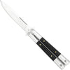 This knife is made from stainless steel including the handle, blade, and frame. This knife is double-walled and double-pinned. The blade comes sharp and features a safety latch.