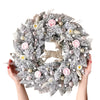 Benefits: Adds a festive charm to any door or wall No maintenance required, keeps its beauty year after year Lightweight and easy to hang securely Combines elegant pink flowers with golden accents and white pearls Perfect for Christmas, New Year, Thanksgiving, or winter décor