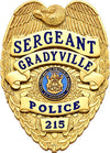 Line 1: SERGEANT Line 2: GRADYVILLE Line 3: POLICE Line 4: 215