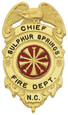 Line 1: CHIEF Line 2: SULPHUR SPRINGS Line 3: FIRE DEPT. Line 4: N.C.
