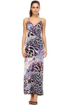 Double strap maxi dress with a crisscross back, v-neckline and fun animal prints to complete the perfect outfit.