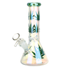 Get a taste of the tropics when you pack a fresh bowl in the Maui Wowie Fumed Beaker Bong! This water pipe is made from transparent borosilicate glass that has a lightly fumed finish. Illustrated weed leaf decals decorate this piece with a pleasant bit of greenery, accented by the green rim mouthpiece. Simple yet stylish, this beaker style body provides plenty of room in its chamber for potent plumes of smoke. The slitted downstem diffuser provides optimal water diffusion, while a 3 pinch ice catcher is built into the neck for ice-cold rips. Each bong includes a separate downstem and a 14mm male herb slide.