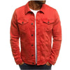 Mens Denim Streetwear Jacket Cotton Casual Slim Fit (Red)