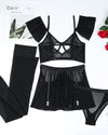 Heart Cut Out Bra Lingerie Set with Stockings