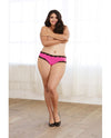 Micofiber cheeky panty with stretch lace trim and elastic criss-cross open back detail. From Dreamgirl. 90% Polyester and 10% Spandex. Hot Pink. 1X. Size: 16-18. Cup: D/DD. Bust: 44'-46'. Waist: 38'-40'. Hip: 46'-48'. Inseam: 30'. Rise: 9'-9.5'. Weight: 180-220lbs. All sales of DG BRANDS catalog products must occur through the retailer's own E-commerce site or physical store. This restriction includes sales through online marketplaces (such as Amazon) and internet auction sites (such as eBay). All DG BRANDS catalog products are subject to MAP (Minimum Advertised Price) agreement.