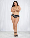 Microfiber cheeky panty with stretch lace trim and elastic criss-cross open back detail. 90% Polyester, 10% Spandex. From Dreamgirl. Slate/Black, 1X. Cup: D/DD. Bust: 40in.-44in.. Waist: 36in.-38in.. Hip: 42in.-44in..All sales of DG BRANDS catalog products must occur through the retailer's own E-commerce site or physical store. This restriction includes sales through online marketplaces (such as Amazon) and internet auction sites (such as eBay). All DG BRANDS catalog products are subject to MAP (Minimum Advertised Price) agreement.