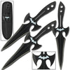 Out of the darkness... comes the Knight! With a unique design featuring midnight-style wings that allow the knife to zip through the air, these dynamic throwing knives are sure to hit the spot. Approximately 7.5 inches long, each knife features a 3.5 inch double-edge blade that is very sharp and ends in a piercing, pin point tip. Very thick and sturdy and made from 440 stainless steel, a powder coated black finish strengthens the steel and gives the stars a notable look while also serving to prevent rust. Each blade offers a silver lining that makes for an attractive look while a distinctive midnight wing stamp on the blade lets you know exactly what this knife is made for! The package includes 3 individual knives plus a FREE black nylon carrying sheath with individual compartments for each knife.