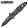 TAC-FORCE " Military " Rescue Dagger Style Spring Assisted Knife. All Black Dagger Style Blade Half Serrated. Black Handle Includes Seat Belt Cutter, Glass Breaker and Clip. 4.5" Closed
