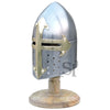 Bring easy medieval flair to your home or office decor with the Mini Sugar Loaf Helmet. This miniature great helm is perfect for adding subtle historical style to nearly any desk or shelf, and it comes with its own wood stand for easy display.
