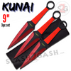 Naruto Kunai Throwing Knives 3 Pc Set w/ Ring Anime - 9" Red