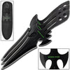 Are you prepared for the Zombie Apocalypse? With a unique design featuring midnight style wings that allow the knife to zip through the air, these dynamic throwing knives are sure to hit the spot. Approximately 7.5 inches long, each knife features a 3.5 inch double-edge blade that is very sharp and ends in a piercing, pin point tip. Very thick and sturdy and made from 440 stainless steel, a powder coated black finish strengthens the steel and gives the stars a notable look while also serving to prevent rust. Each blade offers a silver lining that makes for an attractive look while a Zombie Killer stamp on the blade lets you know exactly what this knife is made for! The package includes 3 individual knives plus a FREE black nylon carrying sheath with individual compartments for each knife.