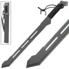 This stainless steel blade has a saw back spine just in case you have to saw off tree limbs.  Not only does this blade have an anodized black finish but a full tang construction as well.  The tanto style blade comes sharp and ready for action. The handle is wrapped with nylon cording to cushion and create a firm grip.  The free nylon sheath comes with an adjustable shoulder strap.