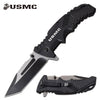 Official USMC 3.5" Tanto Blade Tactical Edc Black Spring-Assist Folding Pocket Knife - Tophatter's Guns'N'Weapons Store