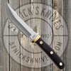 This Old Timer Woodsman Knife is a great tool to take along on hunting trips or wear as an everyday carry. It features a stainless steel satin finish trailing point blade with a hollow grind. The full tang blade is clad with textured polymer composite scales with rivet construction and a polished brass nickel guard. The Woodsman comes with a leather sheath.