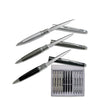 These popular high quality executive pens are expensive looking but they have a little surprise inside. Pull it apart to reveal a 2.5 inch blade. Carry one yourself for self protection and as a conversation piece. Use them as a working pen when you need one but you know you have security right in your pocket. Its great for letter opening. These one dozen refillable pen and letter opener comes in Black, Silver and Grey Color. You will receive 4 of Black, Silver and Grey Color. These pen measures 5.4 inch.