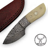 With this knife you must be able to field dress, skin, and bone out the game. Orions Pride Damascus Full Tang Knife comes standard with a hand sewn leather sheath. The sheath has been tooled with the Hunt For Life emblem and a belt loop is included for carrying your blade with ease. This knife comes in a drop point style made from Damascus Steel with a random pattern. Damascus steel does not only have a decorative element but it is also known for its durability, strength, and retainment of an edge. The tang runs all the way through the handle with a decorative notched spine. The bone handle has been polished and garnished with a mosaic pin. To accent the blade, the bolster has also been constructed of Damascus steel.