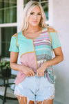 Patchwork Round Neck Cold Shoulder T-Shirt