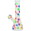 Put your paws together for this adorable water pipe! The Paws for the Cause Beaker Bong is a celebration of all the furry friends that bring joy to our lives each day. Mini paw prints are tracked all along the outside, rainbow by day and glow in the dark by night. Made from white borosilicate glass, this bong has a classic beaker style body with a large chamber capacity. The slitted downstem diffuser provides optimal water diffusion as you inhale, while the 3 pinch ice catcher is built into the neck for refreshingly cool rips of smoke. Each bong includes a separate downstem and a matching 14mm male herb slide.