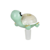 Customize your bong with the Perky Turtle Herb Slide! Crafted from thick borosilicate glass, this bong accessory is made to look like an adorable little turtle with a rounded shell bowl. The head is outstretched so that you can use it as a handle, perfect for preventing your fingers from burns. Each herb slide has a 14mm male frosted joint connection compatible with 14mm female pipes.