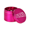 The Piranha Aluminum Grinder measures 2.2 inches wide and is comprised of 4 pieces. This model has holes in the base of the grinding chamber to automatically drop shredded material into the storage compartment, as well as a sifting screen and pollen chamber in the base. The first 2 pieces are kept securely together by the central magnetic connection. Piranha as a brand prides themselves on creating top-notch session equipment, including these grinders that utilize 'razor sharp teeth' to achieve your ideal shredded consistency. The friction ring at the outer top edge helps you keep a better grip when the grinder is all loaded up. Each grinder includes a canvas carry pouch with a drawstring closure for easy stashing and on the go use.