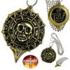A neck knife is a small, fixed-blade knife carried from a pendant rig, which suspends the knife around the neck. Appearing like a piece of pirate gold with Aztec designs, this pirate medallion is not entirely what it seems to be. The small, triangular protrusion from the bottom is not merely decoration or a setting with which to wear the medallion, but instead, the grip of a tiny, sharply curved blade that looks almost like a steel sharks tooth. Efficient for cutting, this tiny blade would also make an effective defensive blade, albeit it only in limited circumstances.