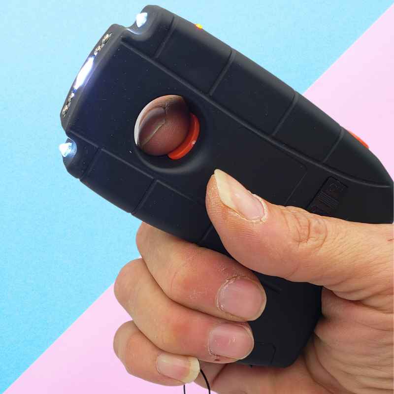 Similar in size to the most popular firearm conceal carried by women in America, the 380 caliber, this pistol grip stun gun feels great in your hands with a contoured grip which aids in stability. The trigger pull is smooth and responsive, distributing 10 million volts of electricity into the body of your attacker.