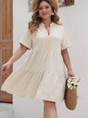Plus Size Lace Detail Notched Short Sleeve Dress