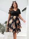 Plus Size Printed Ruched V-Neck Short Sleeve Dress