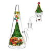 Get in the holiday spirit when you take a hit from the Presents Under The Tree Dab Rig Set! This borosilicate glass dab rig has a conical chamber encasing an ornamented holiday tree centerpiece decked out with colorful wrapped presents all around the outside. Vapors flow through the inline percolator within for a burst of cooling water filtration as you inhale. This set also includes a 14mm male quartz banger, a matching tree-topped carb cap, and two terp pearls; the vortex style carb cap swirls the terp pearls to maximize vaporization.