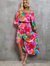 Printed Off-Shoulder Balloon Sleeve Tiered Dress