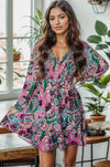 Printed V-Neck Long Sleeve Mini Dress