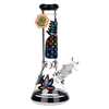 Make a bold statement at your next session with the SeshGear Psychedelic Pineapple Beaker Bong! This water pipe is made of clear borosilicate glass with a high capacity beaker style chamber. The slitted downstem diffuser offers ample rumbling water filtration as you inhale, while a 3 pinch ice catcher is built into the neck for cooling. Thick black bands accent this piece from top to bottom, outlining the colorful pineapple centerpiece and lotus accompaniments at the base. Each bong includes a separate downstem and a 14mm male herb slide.