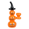 Carve out a spooky-good smoke sesh using the Pumpkin Pile Up Bubbler! This seasonal water pipe is made from quality borosilicate glass with a fixed bubble style bowl on the outside. Within the chamber, a circular percolator provides all the bubbly action you need for smooth smoking. Decorated like a triple stack of grinning jack-o-lanterns, this pipe has a pointed witch's hat bent at the top for comfortable tokes. The curved body shape is easy to grip and pass around with friends, resting nicely on flat surfaces thanks to the flat base. Get yours before the witching hour is up!