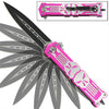 Punisher Pink Stiletto Style Spring Assist Knife - Glass Breaker