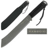 The Legend is back! An almost perfect jungle and bush knife, this is like the one from the movie. The heavy machete styled blade supports many functions and has an edge so sharp it will practically split an atom. Across the whole blade is an antique rustic finish, but underneath it is high quality stainless steel. The handle is about 19mm thick and rounded to fit the hand comfortably. Black nylon is wrapped around the handle grip to improve handling and agility. This is a full tang knife, completely functional. The pommel features a lanyard hole with Para Cord tied to the end. Thick nylon is stitched to make the stiff sheath. The sheath has a belt loop and securing strap. Get a movie reproduction that is fully functional and slices through jungle brush.