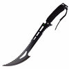 Constructed from a solid slab of heavy duty stainless steel, this full tang machete is a fearsome weapon. A versatile blade, sawback serrations on both sides allow this blade to be used in a variety of ways. Razor sharp, the cutting edge of the 17.25 inch long powder coated black stainless steel blade can handle just about anything thrown at it. A distinctive Black cord wrapped handle serves to provide a solid grip and this sword comes with a FREE nylon sheath.