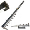 The Blade on this beauty is two toned, Black and Silver, while the handle is wrap with Black Nylon Covering the wooden handle. The Renji Abarai's Zanpakut is not to be used or handle lightly. Blade Material 440 carbon steel. Overall Length 40 inch. Includes Wood Stand, *for display purposes*.