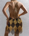 Metallic Patchwork Backless Dress