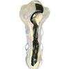 Enjoy a quick thrill anytime with the River Ride Dichro Stripe Spoon Pipe! This compact hand pipe is made from borosilicate glass with a fumed finish that changes color over time with use. The classic spoon style body has thick glass beading that adds to the weight and durability, while also accentuating its unique design. A single dichro-flecked stripe runs down the middle of the body while a built-in carb hole is on the left side.