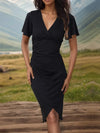 Ruched Surplice Short Sleeve Dress