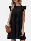 Ruffled Round Neck Cap Sleeve Mini Dress