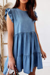 Ruffled Round Neck Cap Sleeve Mini Dress