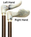 This palm grip cane, with a stylish brass collar, is designed to follow the contours of your hand so such a tight grip isn't necessary. The marble looking handle is made with a highly strong ABS plastic and comes in either a left or right handed grip. These particular canes are much more comfortable than standard cane handles, so they work well for people experiencing carpal tunnel syndrome or arthritis. The brown wooden shaft is made with a hard beechwood for strength and balance. To see a closer look, just click-on the tab below the picture.