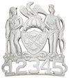 This badge is custom engraved; the text shown is for example only. The center disk, finish, attachment and curve of the badge must also be selected.